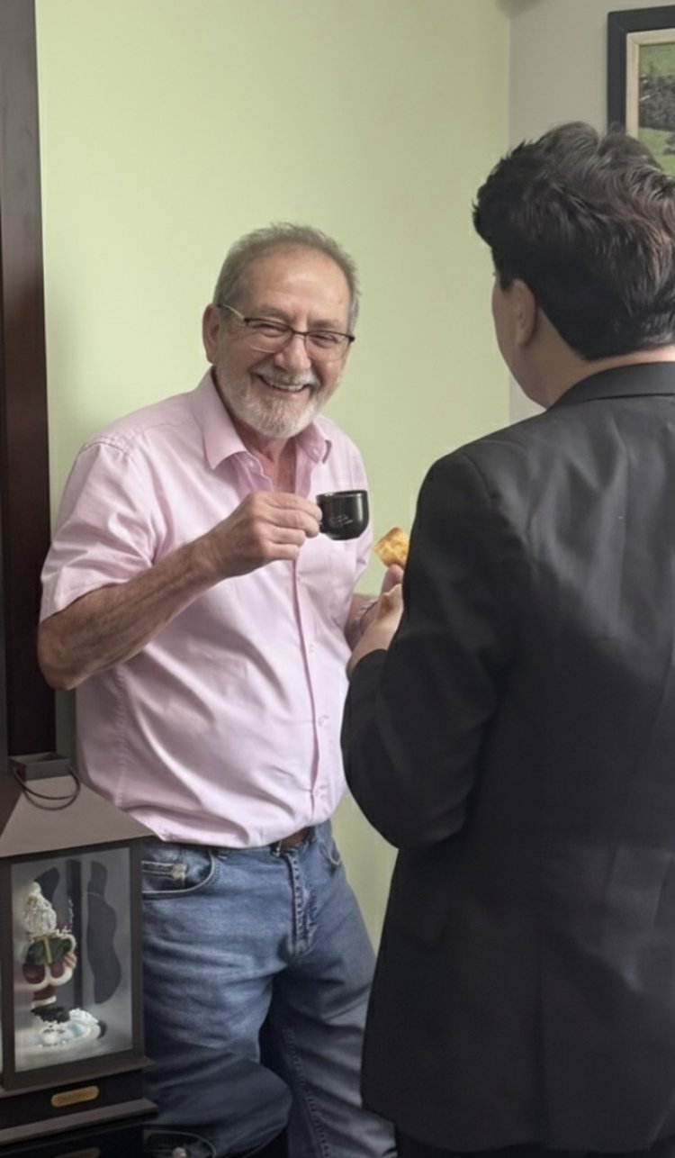 O sensacional empresário Maurício da Sideral tomando um café com este colunista