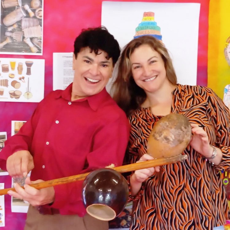 Professora Eliane e este escrevente prestigiando a Feira de Cultura