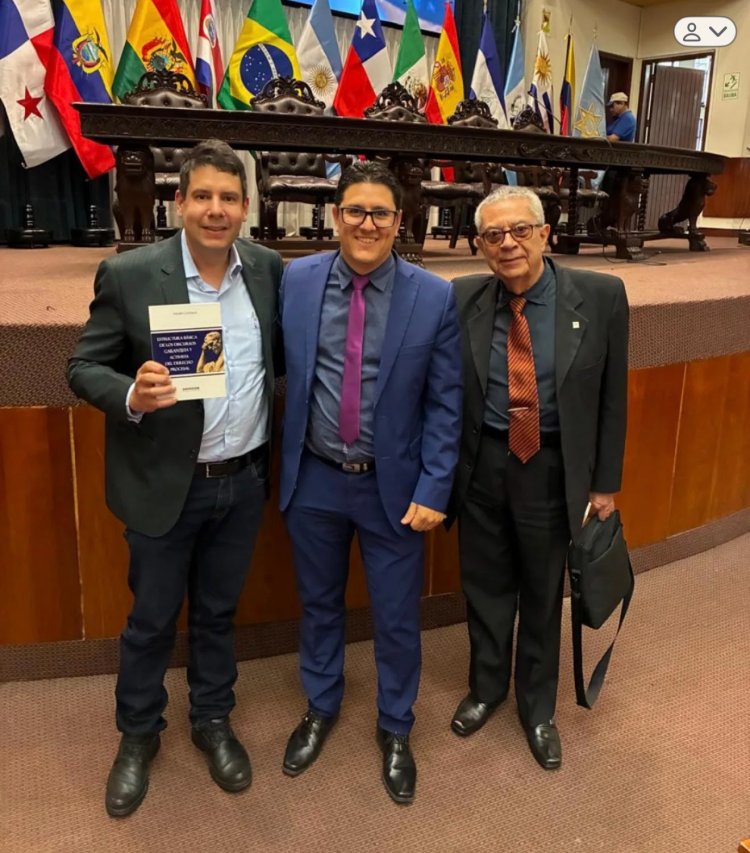 O conceituado e renomado advogado Dr. Ronaldo Bretas ladeado por Dr. Thiago Caversan e o professor Fermin, em um Congresso em Lima, Peru