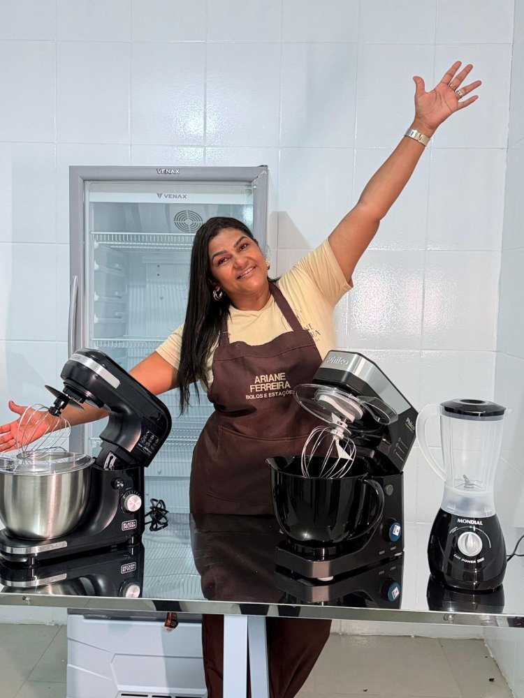 A empreendedora Ariane Bolos e Estações, arrasando em seu mais novo espaço
