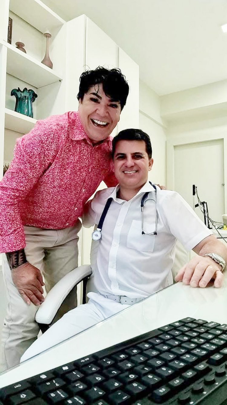O internacional médico cardiologista Dr. Alessandro Bao Travizani e este colunista em seu consultório no Edifício Benfica