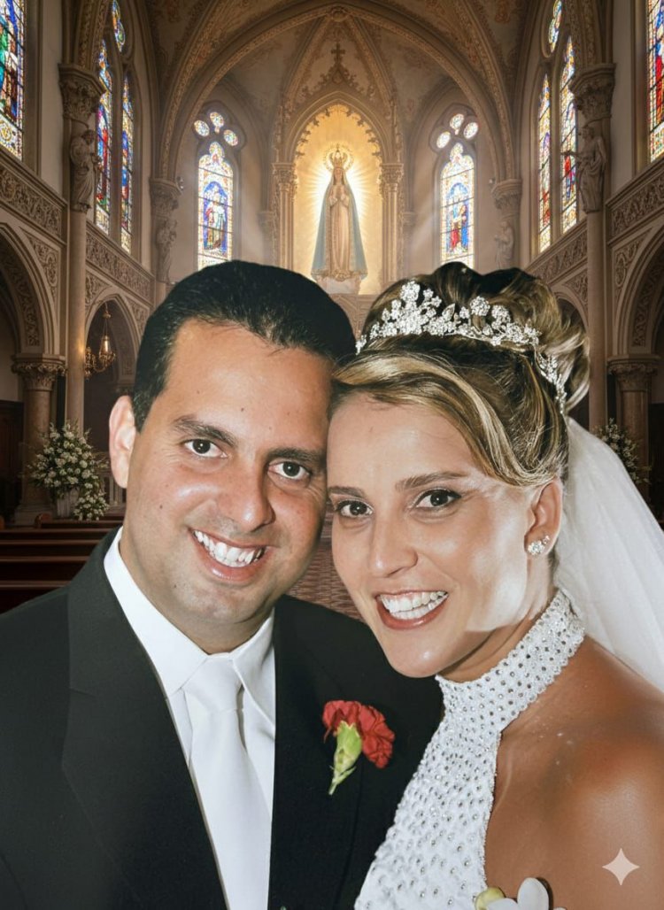 “Há 20 anos eu dava o melhor sim da minha vida”, Rogério Siqueira. Ele e a esposa Cristina celebraram a união na quarta-feira, 8. Parabéns!