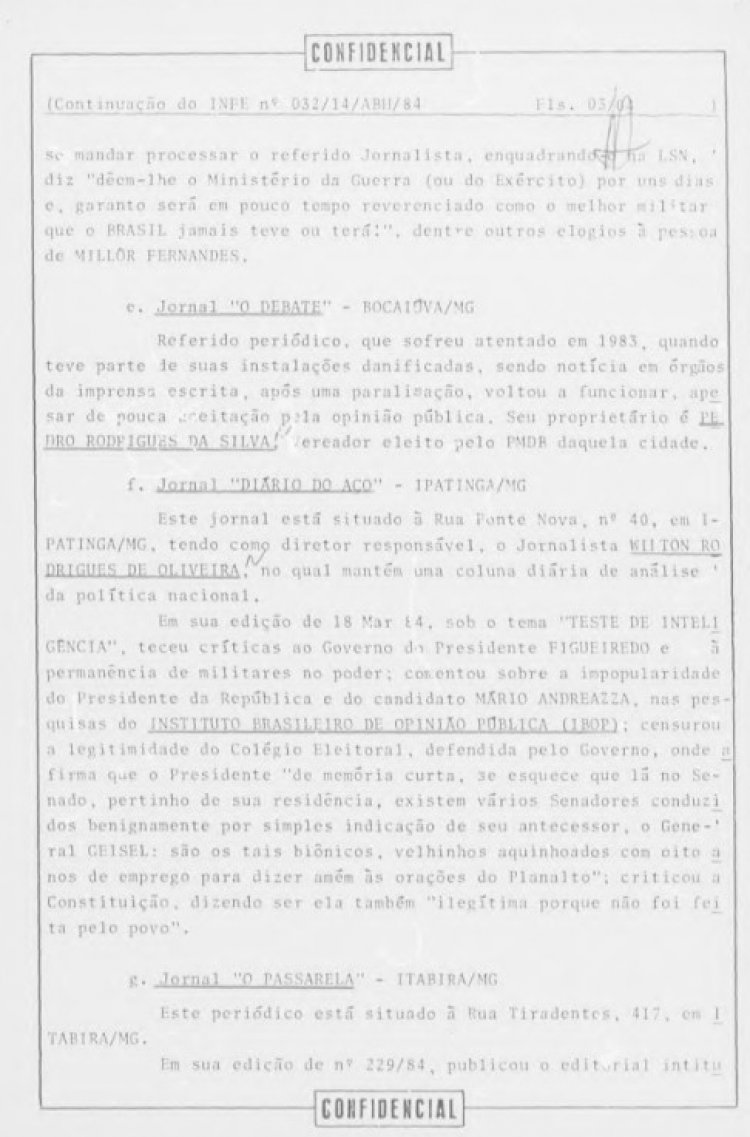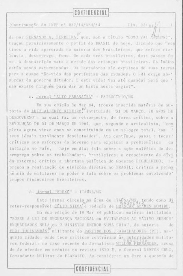 O caso do Jornal Brexó, sediado em Itaúna, Minas Gerais, evidencia com precisão esse mecanismo, demonstrando que a produção jornalística regional era monitorada, classificada e interpretada pelo aparato de informações do Estado.