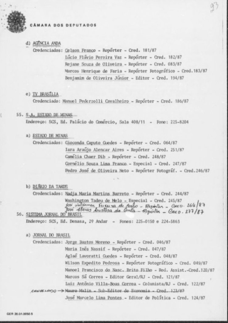 Além disso, a documentação produzida pelo SNI no final da década de 1980 amplia significativamente o alcance desse acompanhamento ao situar José Waldemar Teixeira de Melo também no circuito nacional da imprensa política. Em dossiê classificado como “Confidencial”, com os informes dos códigos “B1C”, “RR1”, Z7 “A” e “W”, voltado à atuação de jornalistas credenciados no Congresso Nacional e no Palácio do Planalto, Waldemar aparece listado como repórter credenciado, identificado pelo registro nº 264/87, vinculado ao jornal Diário da Tarde, ao lado de profissionais provenientes de diferentes estados do país.